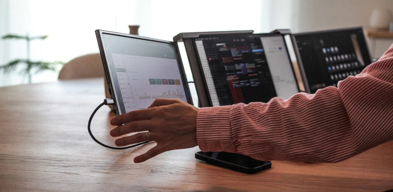 The visionary behind Beedisplay, Stephen Emmerson our Co-Founder is a leader with a relentless passion for innovation empowering people to achieve more. With a talent for storytelling and a knack for connecting with audiences, Clara Milette is the brain behind our marketing strategies. A master of design and innovation, Toshio Huan Ma leads our design team in creating products that are both functional and aesthetically pleasing. Together, Stephen, Kyle, Toshio, and the entire Beedisplay's team are committed to shaping a future where portability and efficiency go hand in hand.
